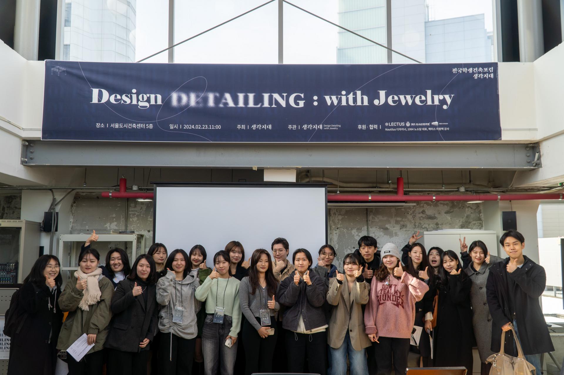 건축에서 우리가 배워온 디테일의 예시들은 대게 작아왔기에, 디테일은 작아야 한다 거나, 작은 것이 디테일이라는 오해에 빠져 작은 오브제들을 무차별적으로 추가하는 실수를 범하기도 합니다. 디자이너의 디테일을 비로소 스케일에서 해방시키기 위해 본 워크샵에서는 손으로 가려질 수 있는 스케일인 쥬얼리를 활용하여 과정으로서 디테일이 갖는 의미를 분해하고, 또 재조립합니다.