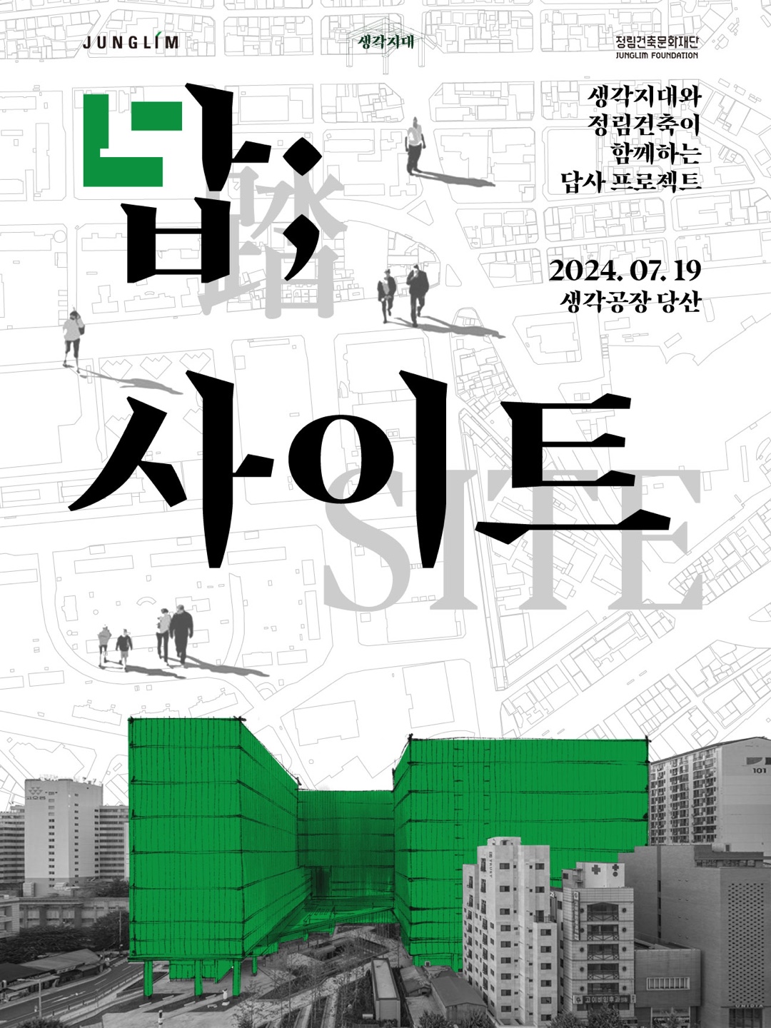 <답;사이트> 프로젝트는 건축을 공부하는데 있어 ‘답사’의 중요성을 인지하고 직접 공간을 탐구하는 행위를 통해 얻는 여러가지 이점들을 극대화하고자 하는 프로젝트입니다. 답사는 건축학과 학생들에게 건축물을 온전히 이해할 수 있는 가장 효과적인 방법입니다. 생각지대는 정림건축의 도움을 받아 보다 좋은 환경에서 답사를 진행할 수 있는 기회를 제공함으로 건축학도에게 미래의 건축가가 되는데 필요한 기반을 다질 수 있는 기회를 제공합니다.